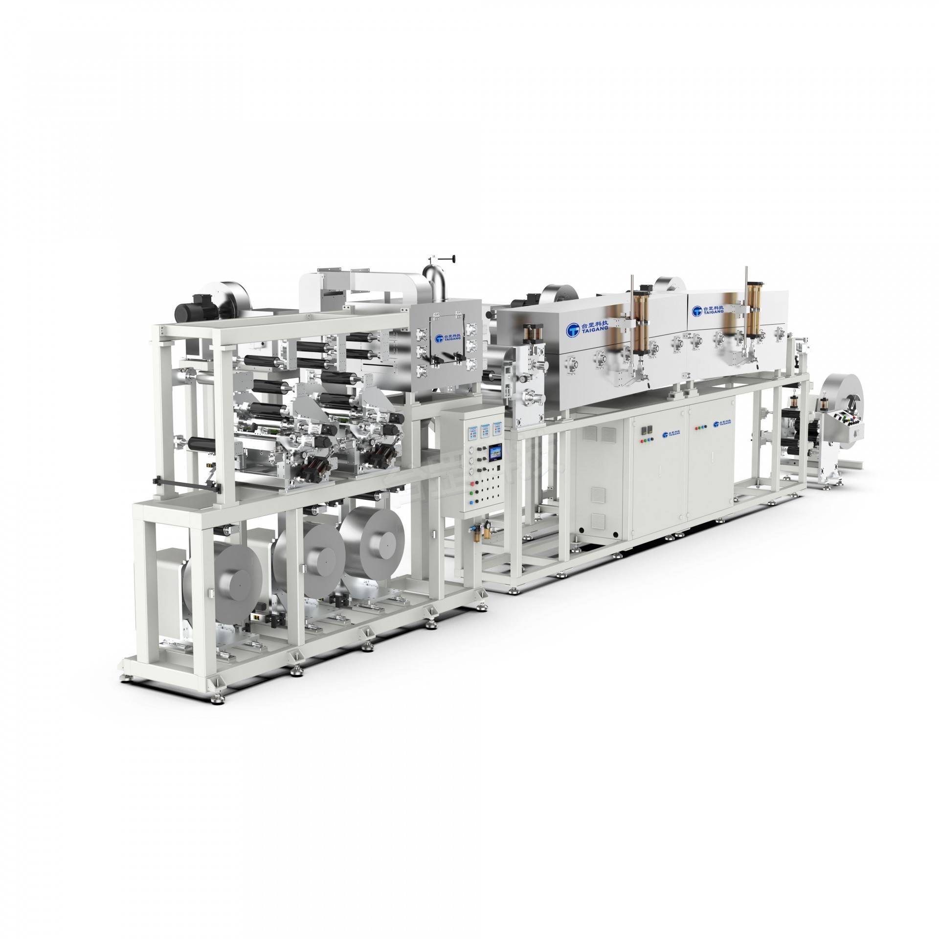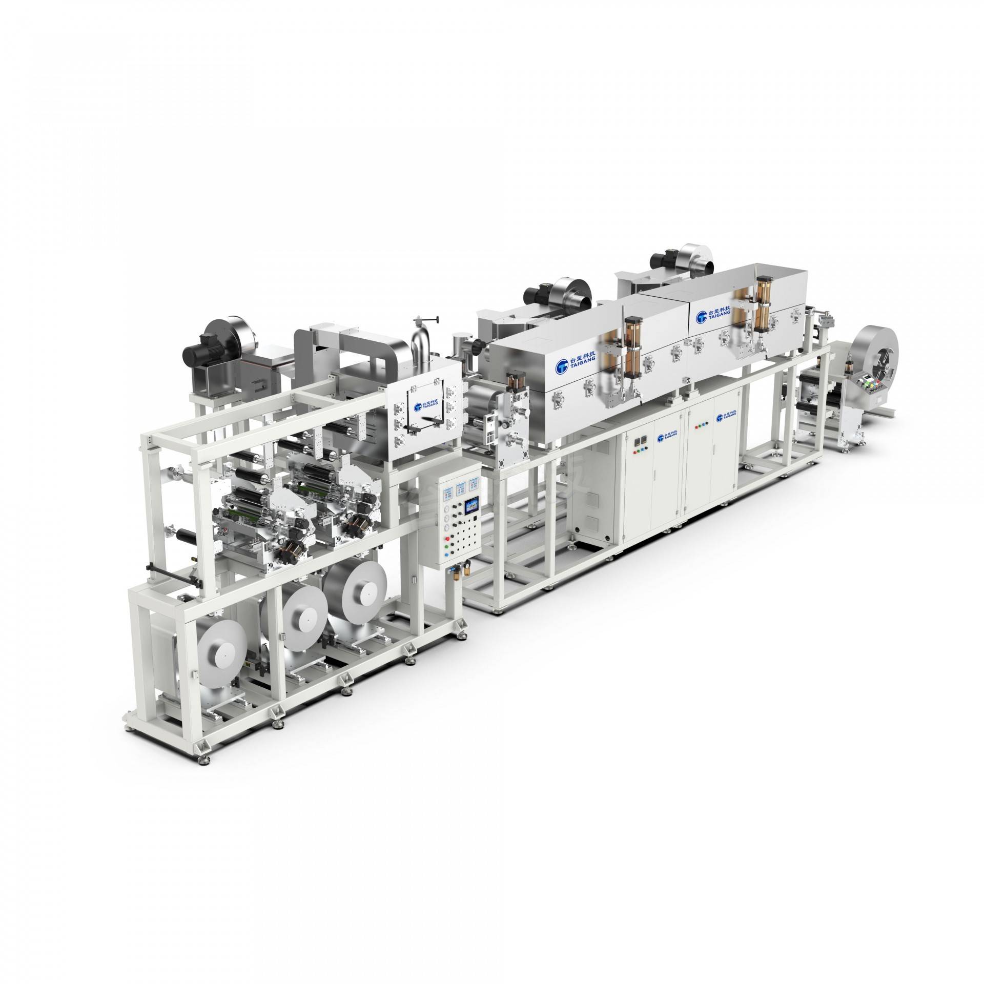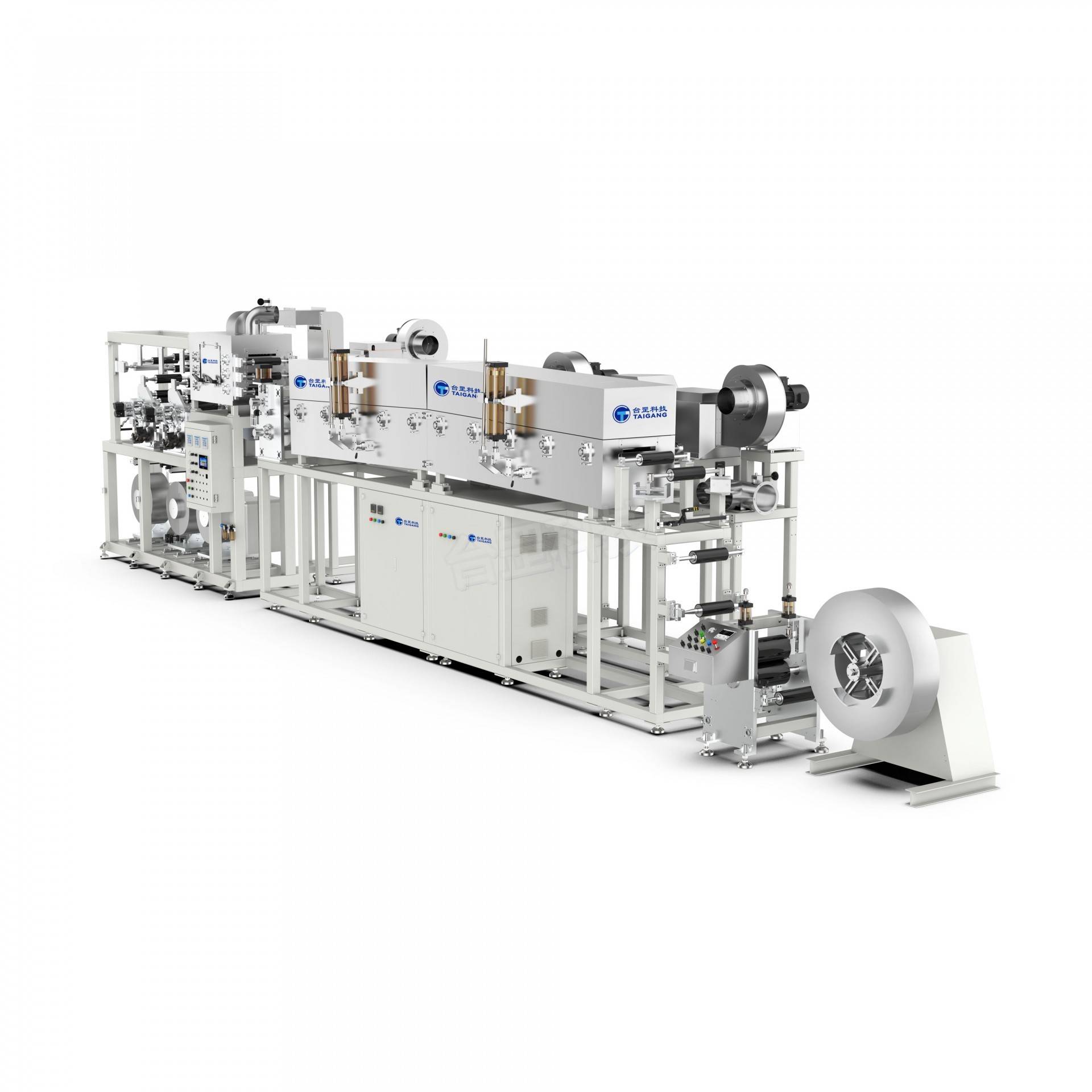 涂布一层胶粘剂后,通过压辊与其他材料复合,再经过热烘道干燥成为复合薄膜,适用于塑料薄膜、铝箔、纸张、光柱膜、镀铝膜、非晶/硅钢带材各类金属箔材等多种基材涂布复合。