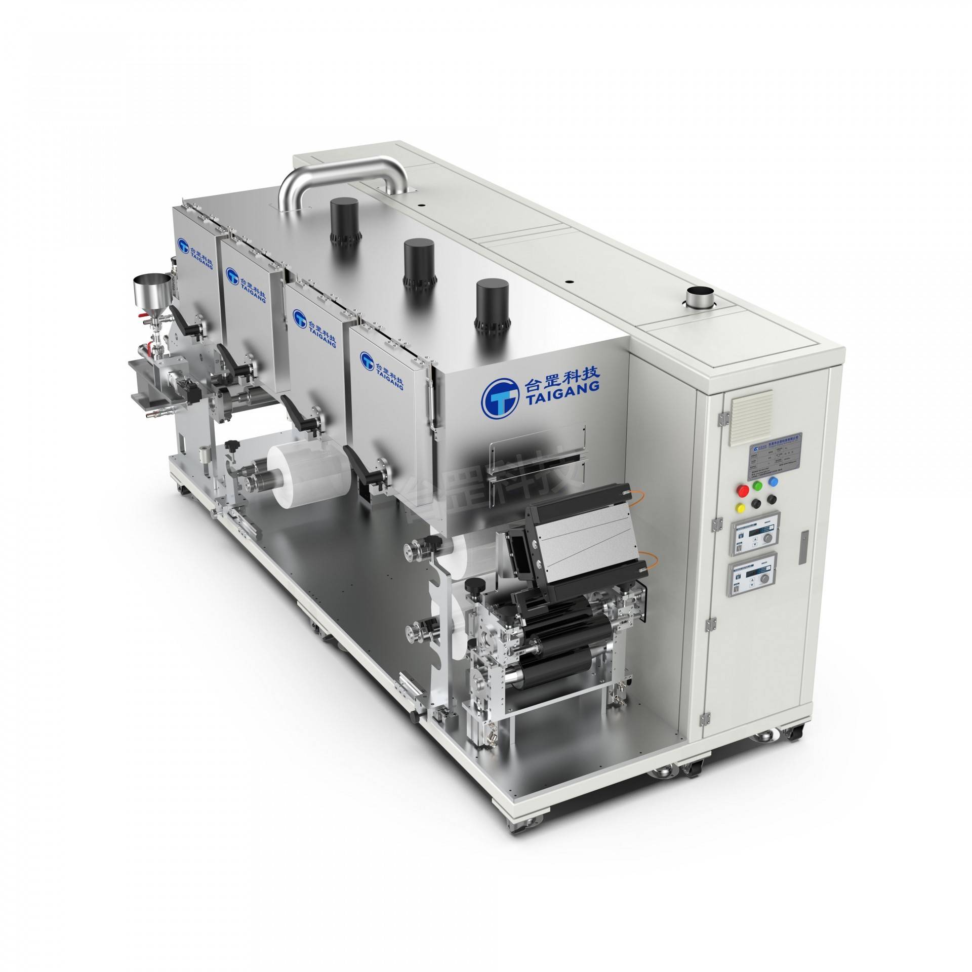 涂布方式 挤压/转移/刮刀/微凹版/挤压转移/挤压刮刀涂布 涂布宽度 50-280(mm) 导辊幅宽 300 (mm) 速度控制范围 0.01-2(mmin) 收放卷径 250 (mm) 涂覆温度 ≤160 (°℃) 涂布厚度 1-500(um) 功能选配 电晕处理、静电消除、基材展平、NMP处理、供料装置、红外干燥、紫外固化、干燥箱数量等。 设备尺寸 3500 x1200x1100mm